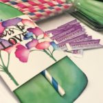 Simple watercoloring on some watercolor paper with Tombow markers was quick and easy for the birds & Good Vibes die cut. After coloring some loose stripes on the paper I used a generous amount of water to blend the colors. Once dry I stamped the birds and cut them out. The birds are from this stamp set called, “Strangeness” . I love that you can save money on the set. Tomorrow I will be coloring the awesome flowers in this stamp set and I can’t wait!