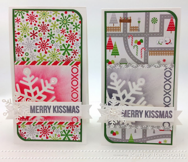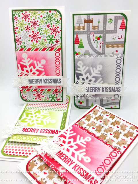 I used a dauber to created the inked backgrounds on my cards. The rays of light look were intentional coming off the snowflake stencil. (The ink colors that matched the papers are linked in the supply list.) The sentiment was stamped on this banner die & I traced over the snowflakes & the sentiment with this awesome glitter pen. The perfect stocking stuffer!
